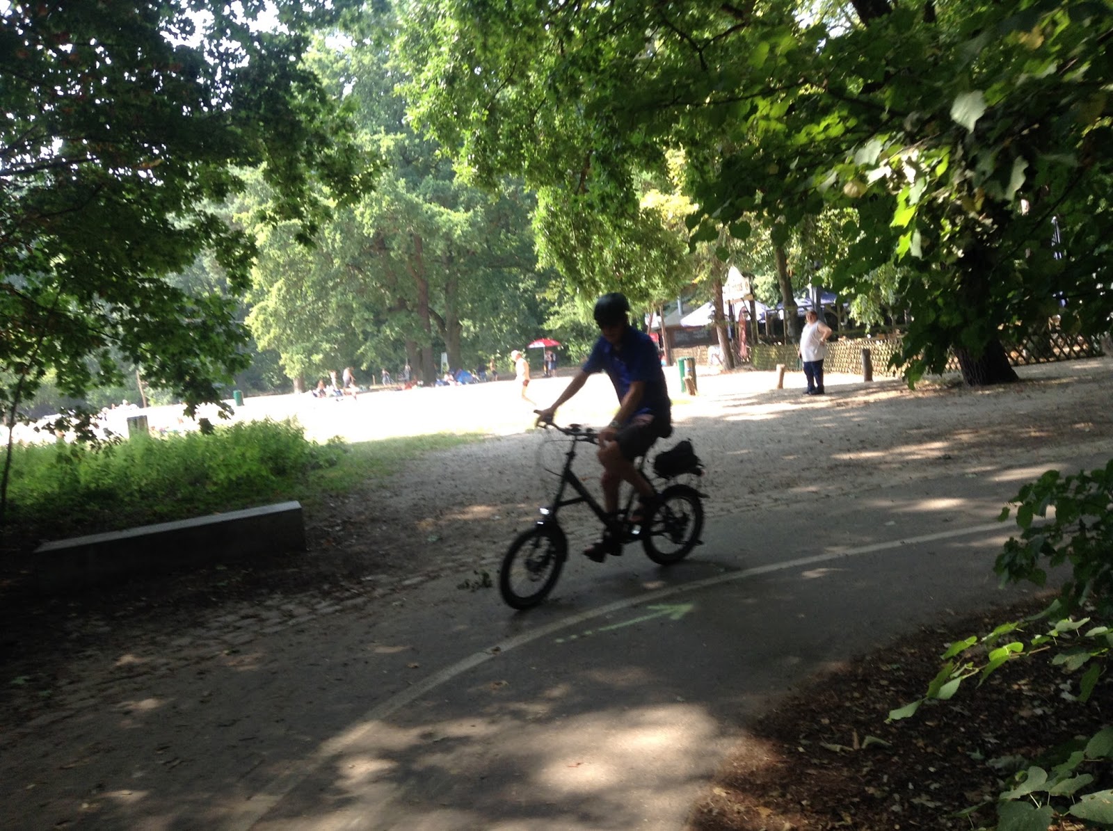 左にハーフェル川とそれにつながる湖を見ながら、ポツダムの住宅街を進んでいくと