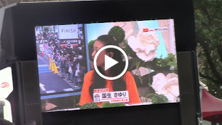 鹿児島マラソンは、地元の放送局2局(MBC午前、KTS午後)で、朝から生中継をしていて、公園内でパブリックビューイングがありました。